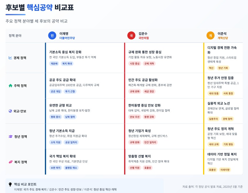 후보별 핵심공약 비교표